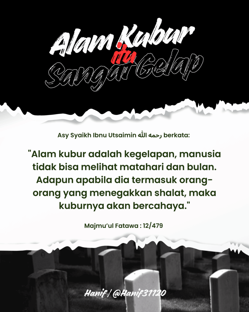 Alam kubur adalah fase pertama perjalanan setelah kematian yang penuh misteri dan kegelapan. Dalam riwayat ulama, dijelaskan bahwa manusia tidak lagi melihat matahari maupun bulan di dalamnya. Namun, bagi mereka yang senantiasa menegakkan shalat dan ketaatan, kuburnya akan bercahaya sebagai bentuk rahmat Allah. Pesan ini mengingatkan kita untuk menjaga ibadah dan amal shalih sebagai bekal menuju kehidupan akhirat. Setiap muslim dianjurkan mempersiapkan diri sejak di dunia agar kelak mendapat penerangan di alam kubur.