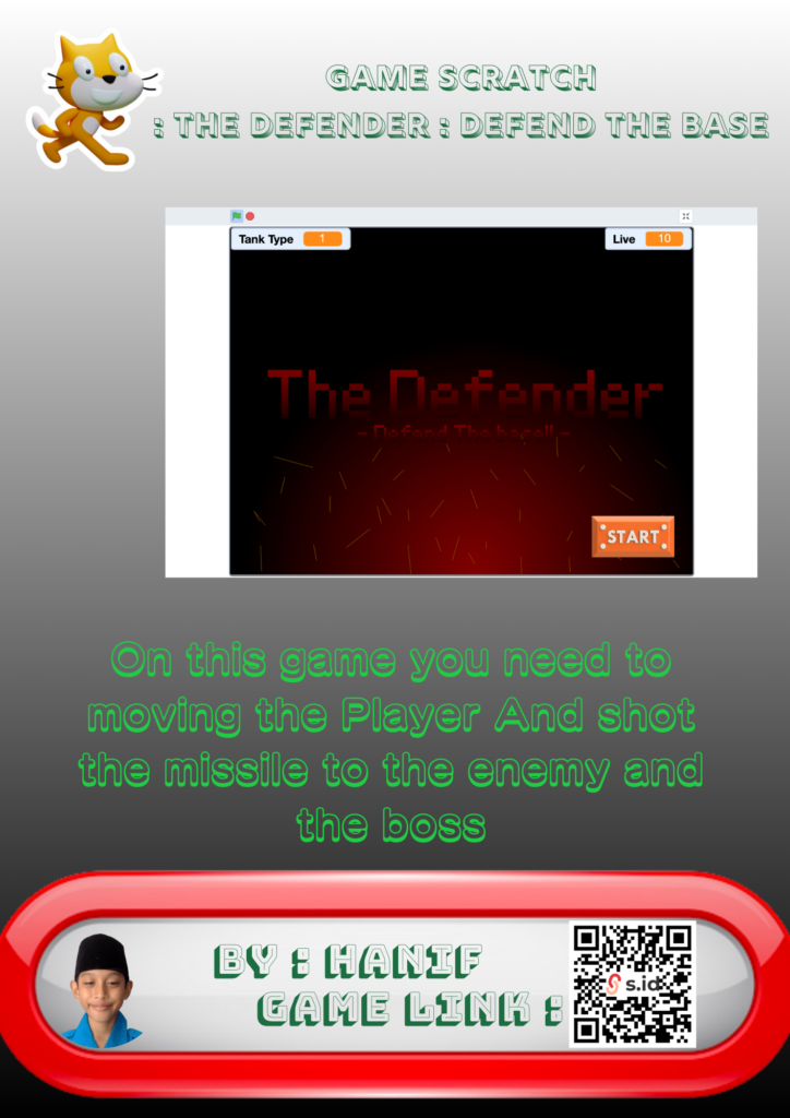 This is The Defender: Defend The Base, this game made using scratch, and the demo upside of this all text. Use “q” keyword for shooting !